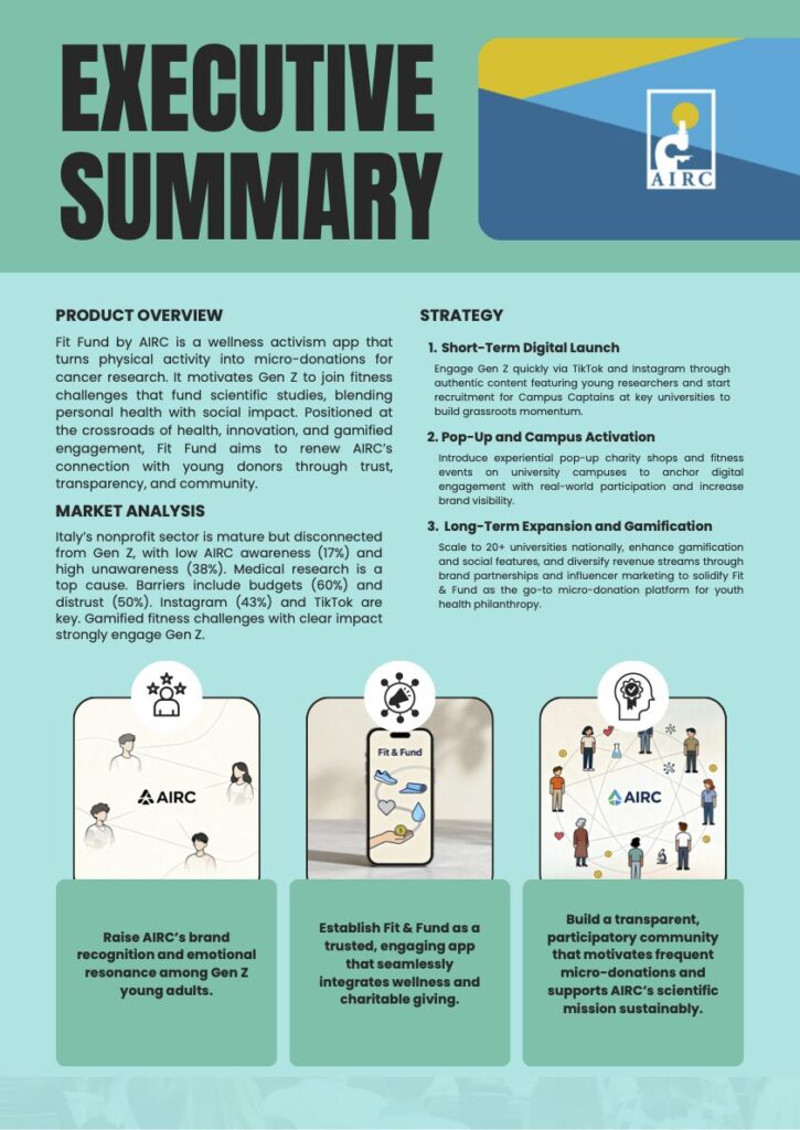 A marketing strategy project that transforms physical activity into micro-donations, connecting Gen Z wellness habits with transparent funding for cancer research.